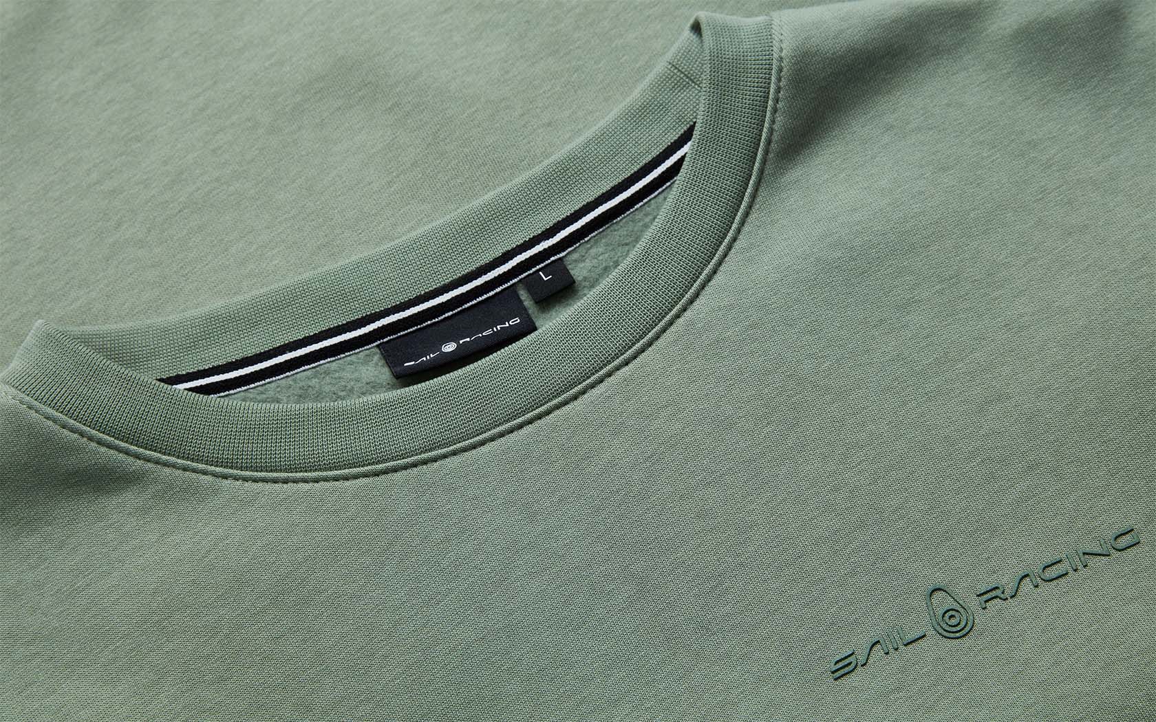 Bowman Logo Sweater constructed in BCI cotton and recycled polyester. The sweater features a classic sweater design with a crewneck, ribbed cuffs on sleeve ends and bottom hem. Sail Racing rubber logo at the chest and at the side seam, and bloc logo at the back yoke.